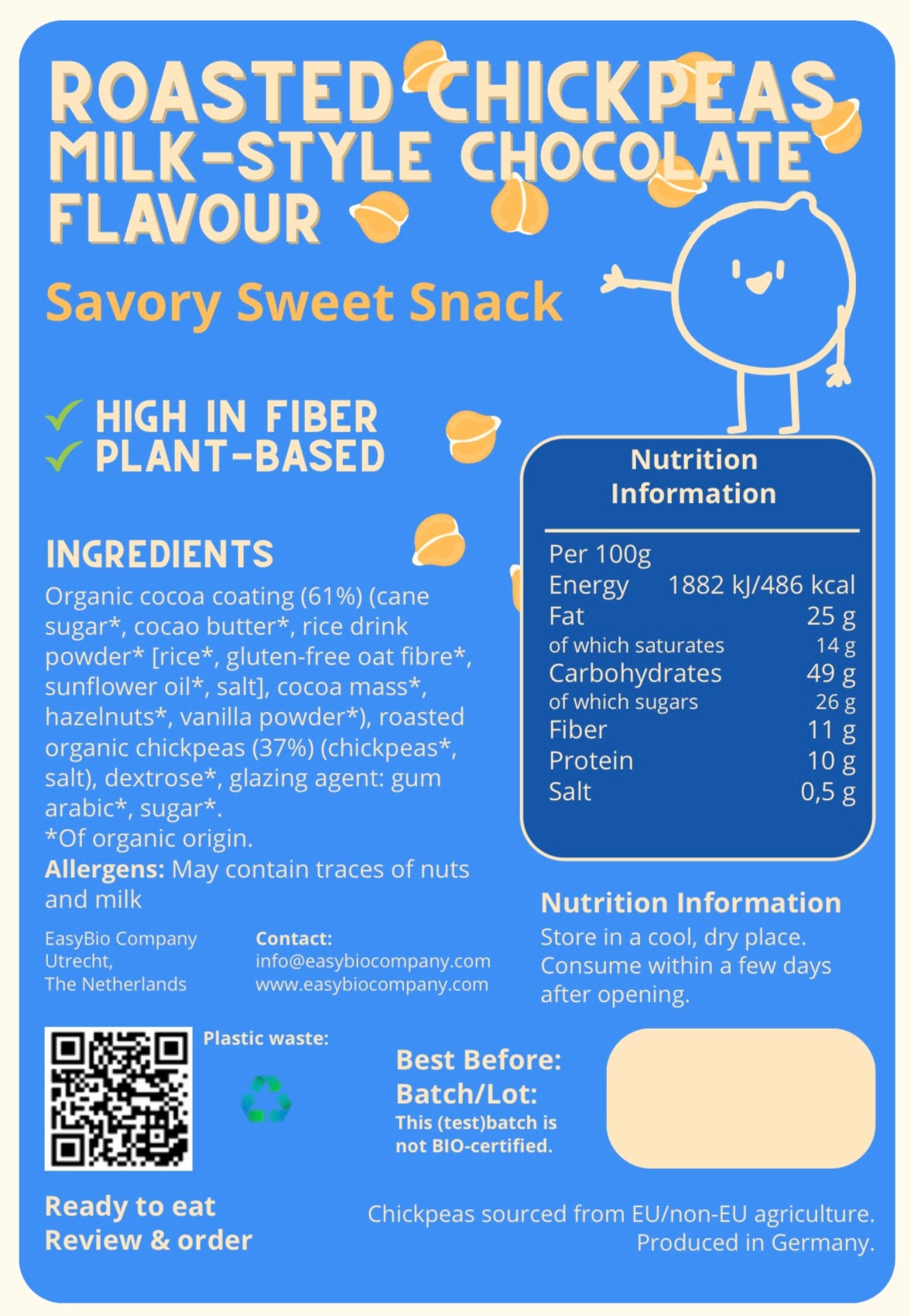 Een speelse combinatie van knapperige kikkererwten en romige milk-style chocolade. Zoet, crunchy en net even anders dan je gewend bent. Ideaal als klein genietmoment, zonder dat het te zwaar wordt.