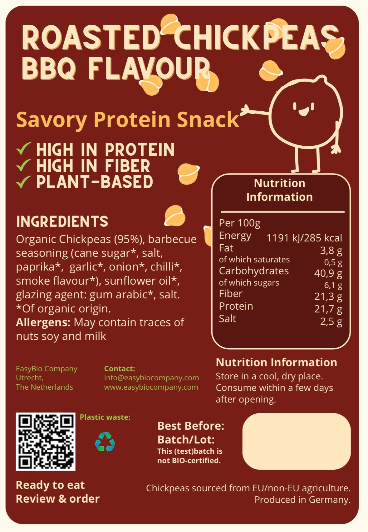 Onze BBQ-variant is hartig, knapperig en vol smaak. De kikkererwten worden langzaam geroosterd voor een stevige crunch en daarna gekruid met een zachte, rokerige BBQ-mix. Een fijne snack voor elk moment waarop je iets lekkers wilt.